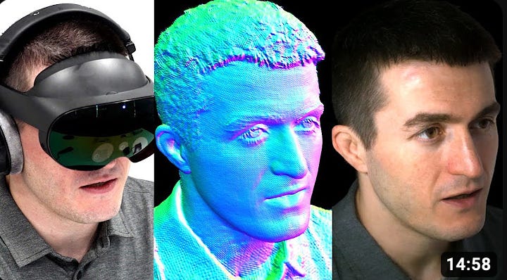 Lex Fridman und Mark Zuckerberg unterhalten sich im Metaverse, nachdem von beiden vorher 3D Scans angefertigt wurden, die dann die Mimik übertragen.